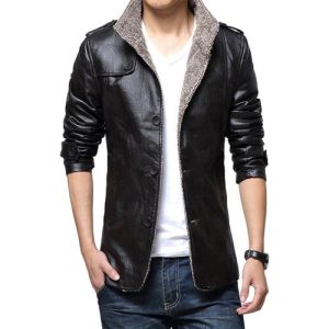 Jumia Solid Color Long Section PU Leather Cotton-padded Coat Slim Fit For Men