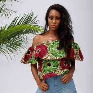 Ukenia Kiwi off shoulder ankara print blouse 100% cotton