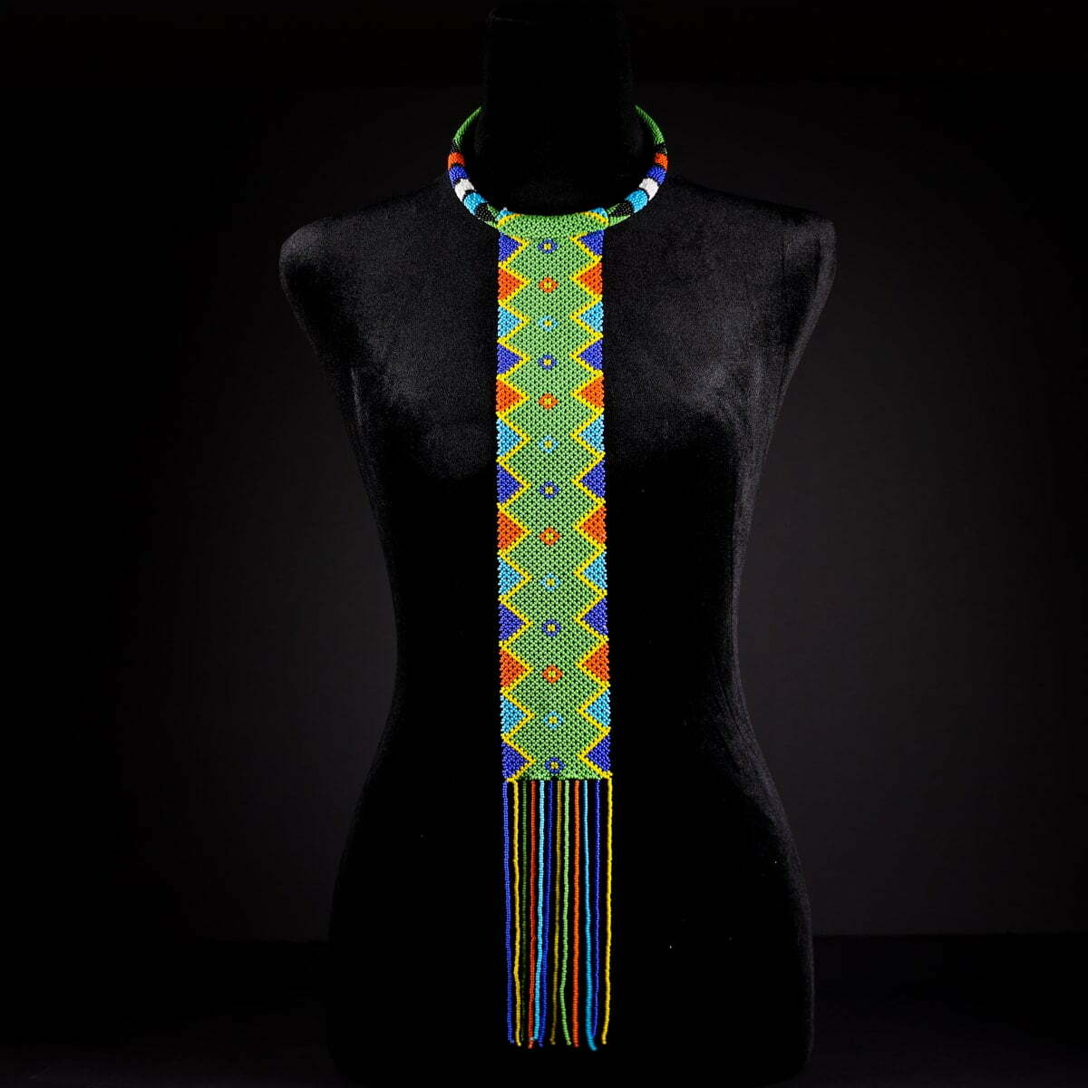 African beaded necklace (green rectangular)