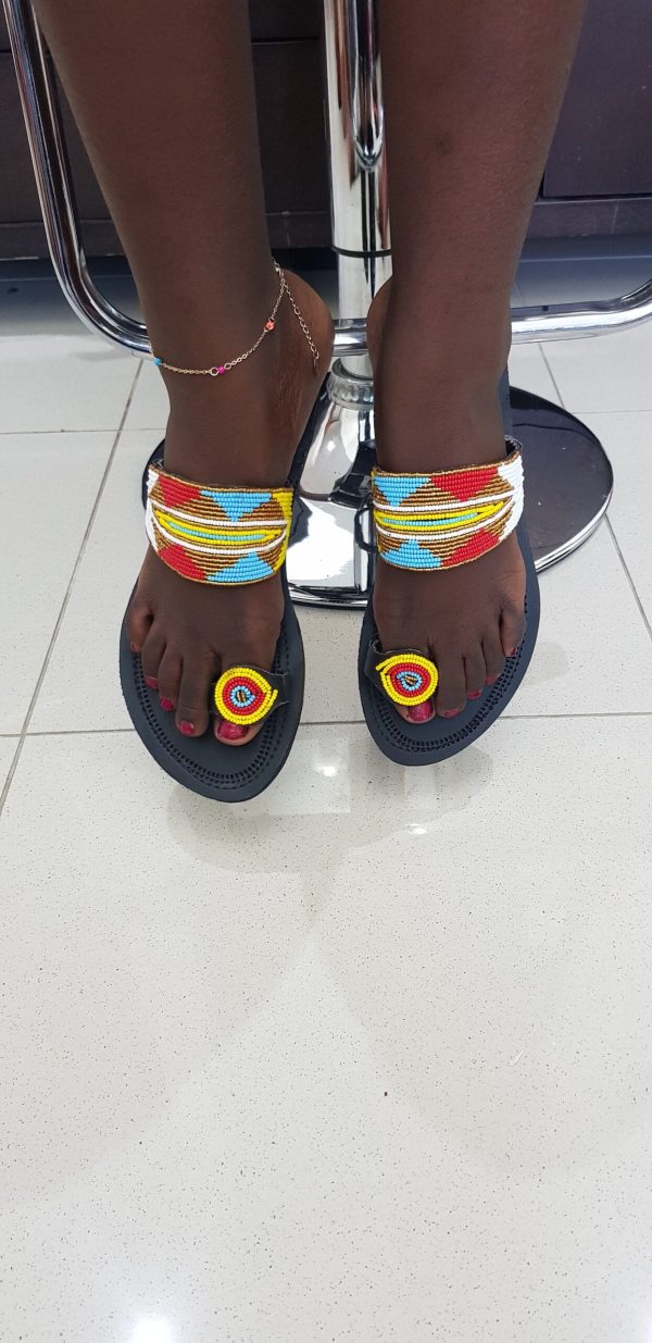 Ukenia Beaded maasai sandal- yellow red blue gold