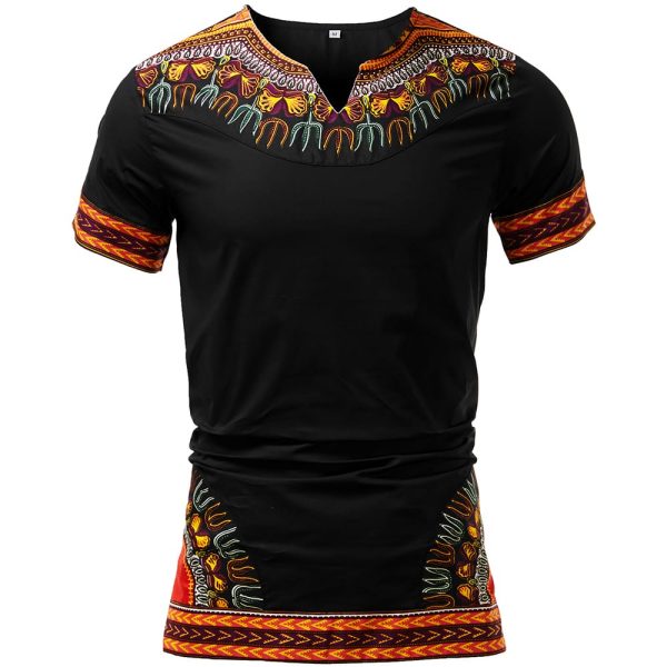 Ukenia Black summer short sleeve tshirt 100% cotton with dashiki details